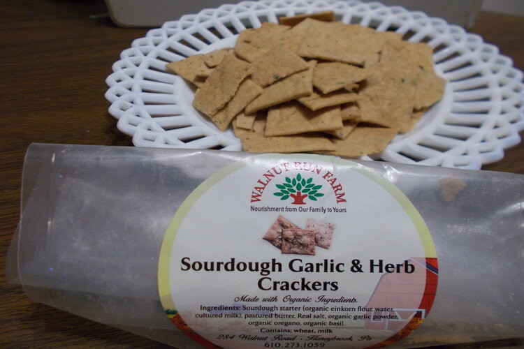 Sourdough starter, (organic einkorn flour, water, cultured milk), butter from pastured cows, Real salt, organic garlic powder, organic oregano, organic basil.